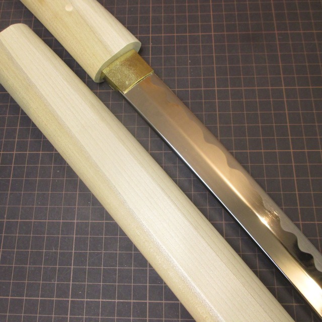 ヤ〇ザ映画や斬鉄なイメージが強いですが、本来はこのまま使うモノではなく、使わない刀身を収めとく為の拵。普通の拵を人の鎧や服に例えるなら白鞘はパジャマみたいなもの。朴製の柄/鞘、樋無し亜鉛合金刀身。天然木なので木目やら色合いには激しく個体差があります。(特注組み込み不可) ※美術刀は装飾目的の模擬刀剣です。振り回すような用途に耐えるものではありません。 ・鞘込み全長:約100cm 刃長:約70cm ・鞘込み全重量:約1,0kg 抜き身重量:約0,75kg ※製造ロット等により若干の個体差があります 刀身:亜鉛合金 柄:木製(朴材) 鞘:木製(朴材) 製造:日本(岐阜県関市)