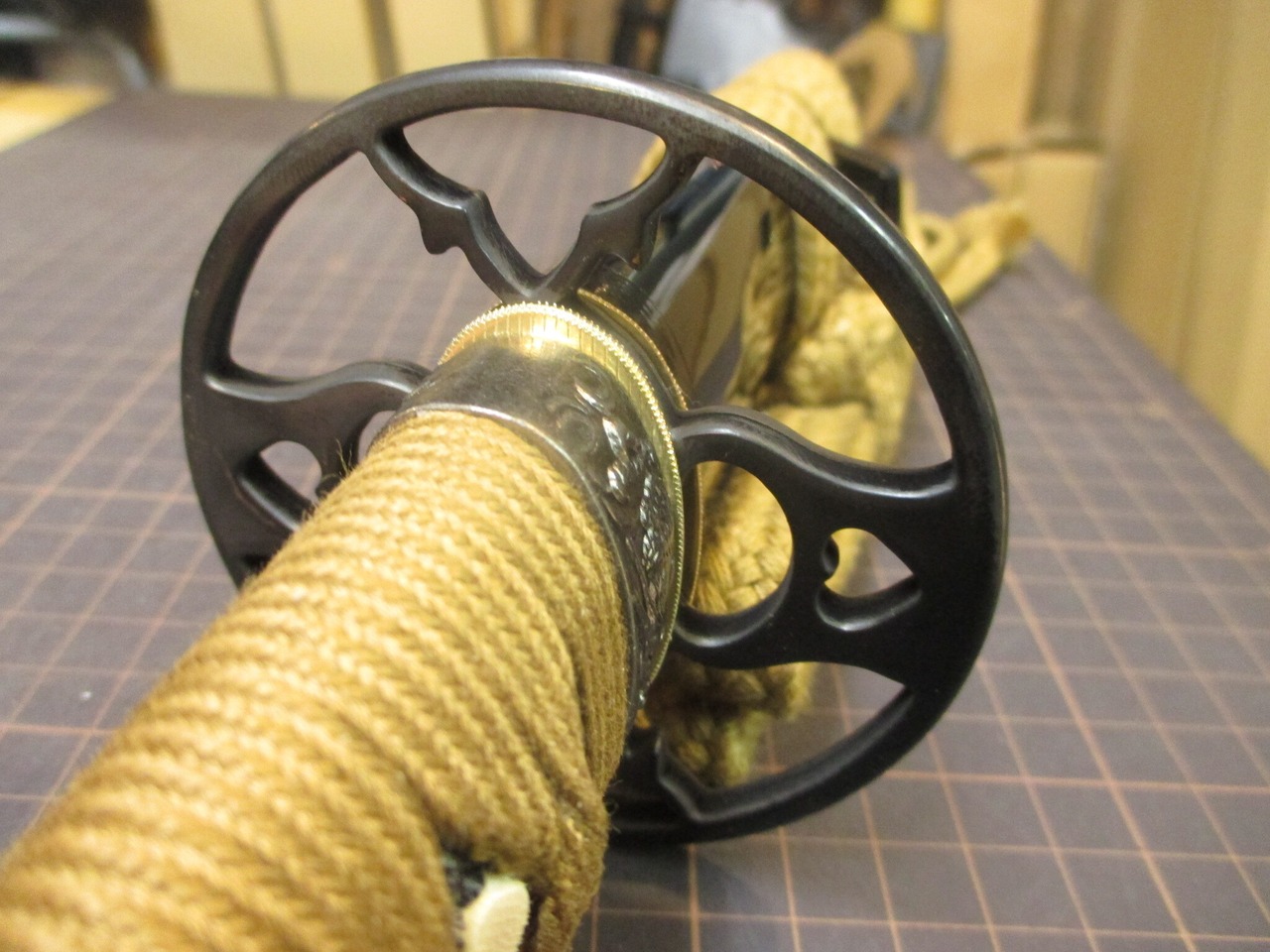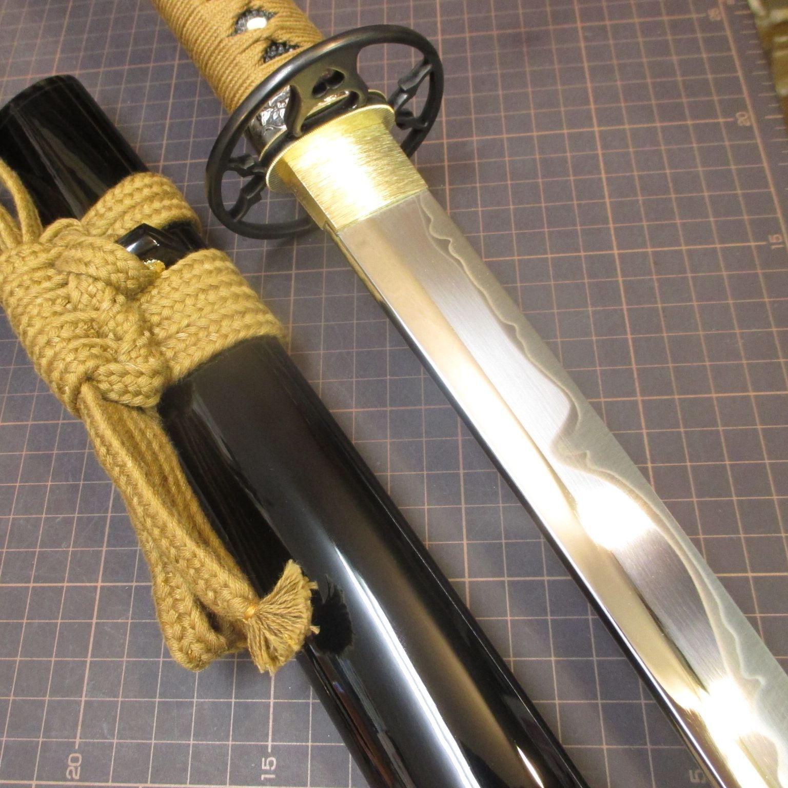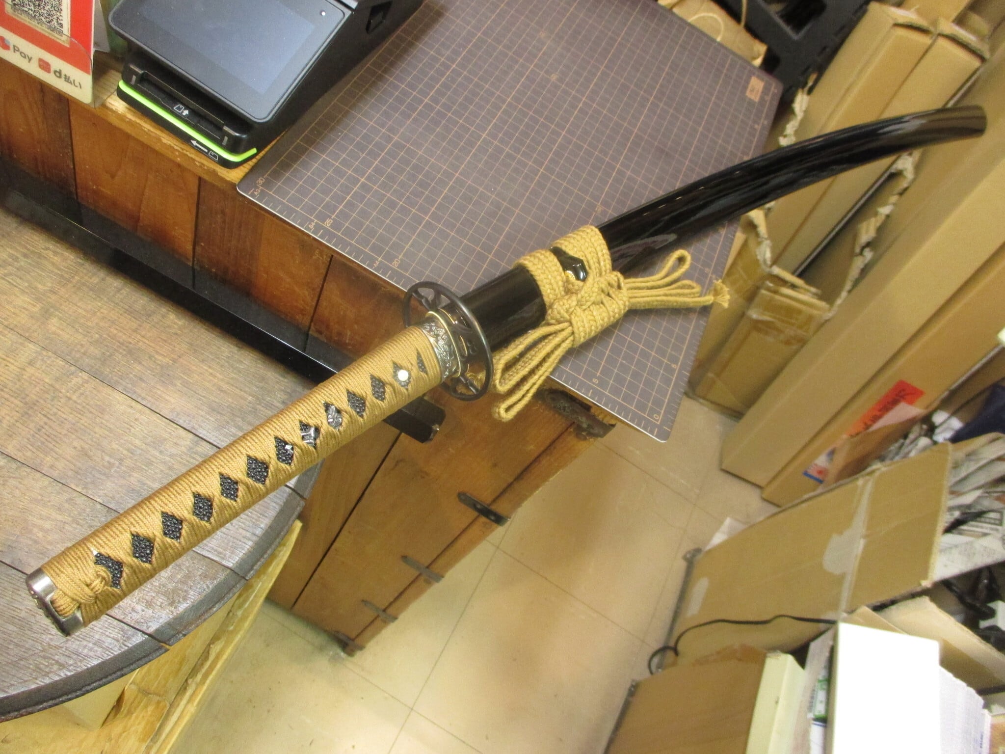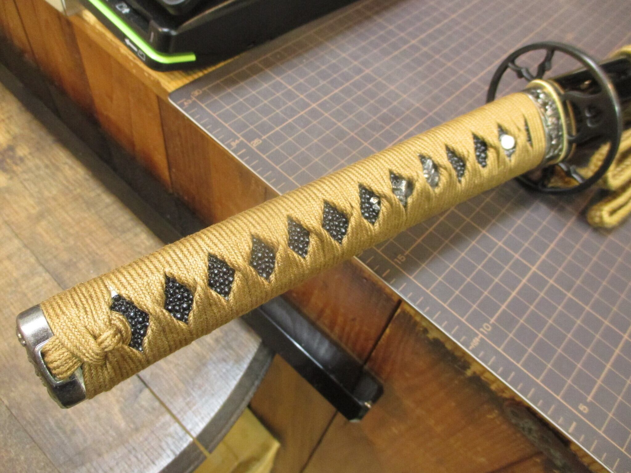 黒呂鞘、茶糸。柄は一応ちゃんと朴材に本鮫。