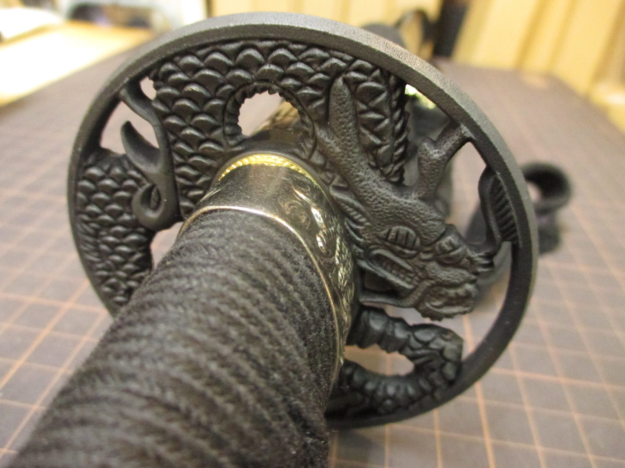 特に目立つのが鞘先の、波に龍図のおおぶりなコジリ金具。
