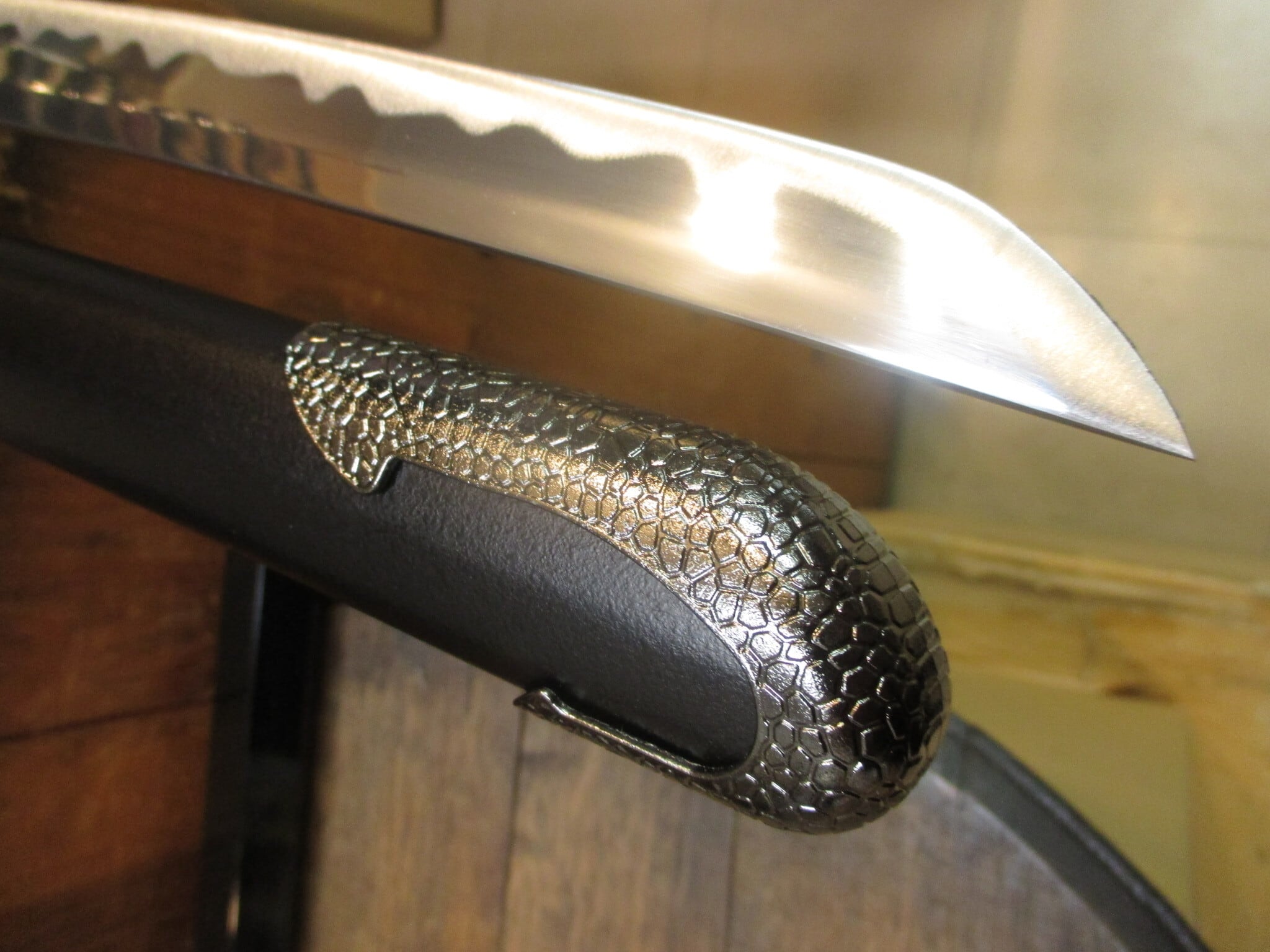 全身黒めで大人しいながら合皮一貫巻やら半太刀金具やら突兵コジリやらでわりと高めに。仕様通りです。